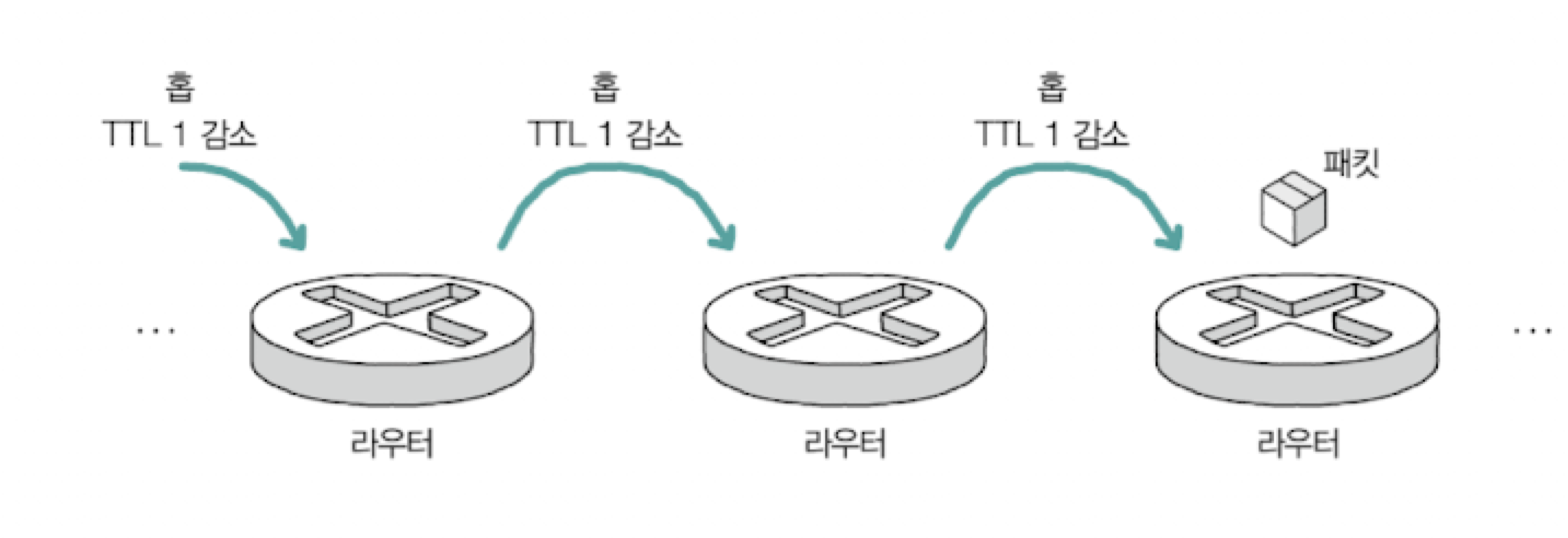 패킷이 하나의 라우터를 거칠때마다 TTL이 1씩 감소한다. 이때 TTL필드가 0이 되면 해당 패킷은 폐기되고 패킷을 송신한 호스트에게 [시간초과] ICMP 메시지가 전송된다.
