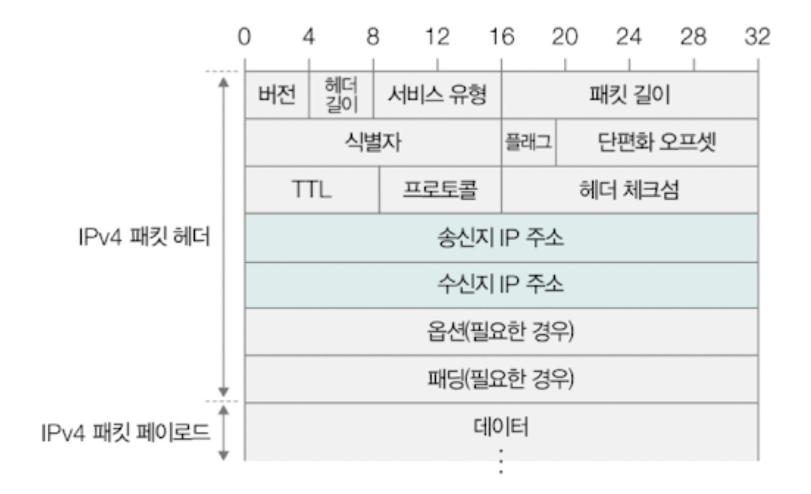 송신지 IP주소, 수신지 IP주소 필드