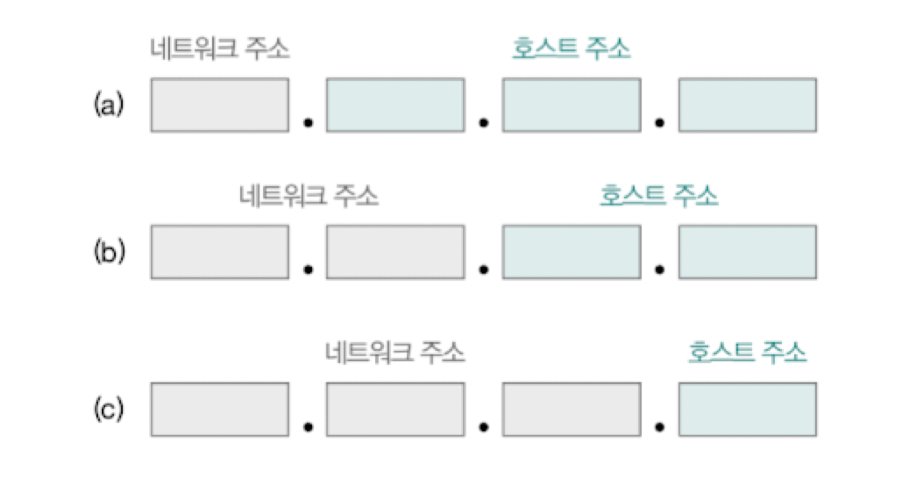 - a의 경우는 호스트 주소에 24비트를 사용할 수 있기 때문에 상대적으로 네트워크당 많은 호스트를 IP 주소에 할당할 수 있다.