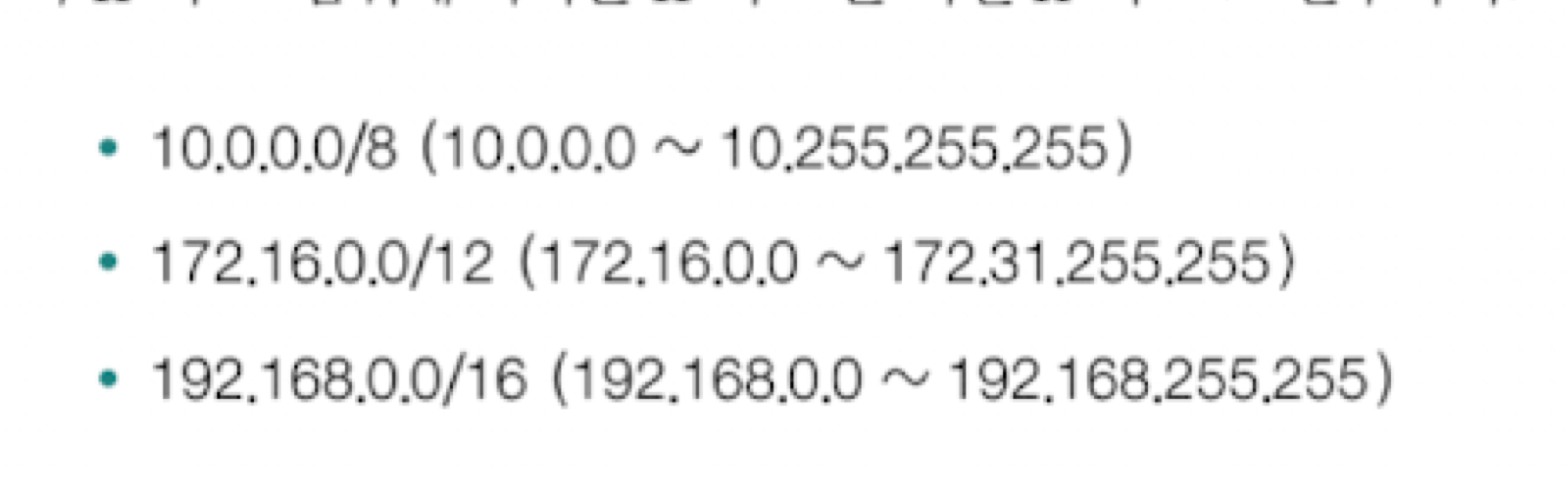| 172.16.0.0 ~ 172.31.255.255 | |