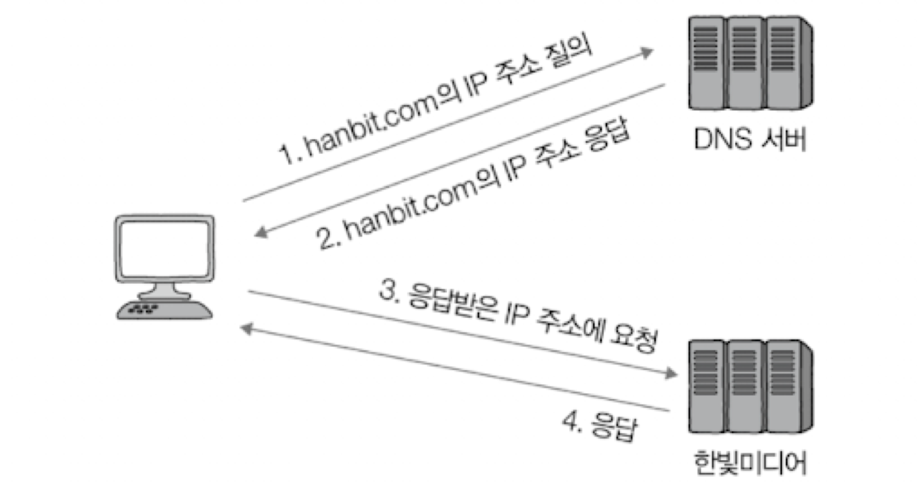 호스트가 도메인 네임을 토대로 이에 대응되는 IP주소를 알아내려면 <도메인 네임, IP 주소> 쌍으로 저장하는 서버에 질의해야함.