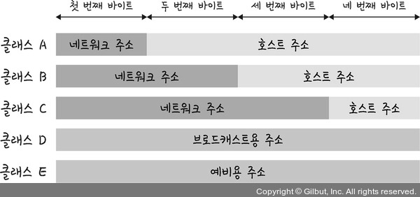 - 클래스 E: 앞으로 사용할 예비용으로 씀