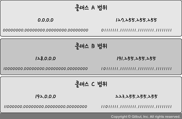 앞에 있는 부분을 네트워크 주소, 그 뒤에 있는 부분을 컴퓨터에 부여하는 주소인 호스트 주소로 놓아서 사용함