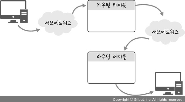송신지에서 수신지까지 도달하기 위해 사용됨